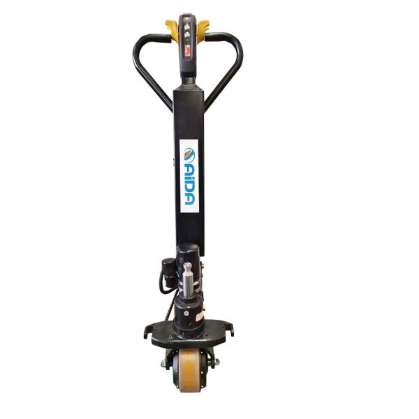 AIDA power handle kit is a self-propelled motorized module that integrates a driving motor, wheel, accelerator, controller, lifting unit, lithium battery, and harness assembly. It is designed to effortlessly convert an old manual pallet truck into an fully electric power pallet truck within minutes, all at a low cost.
